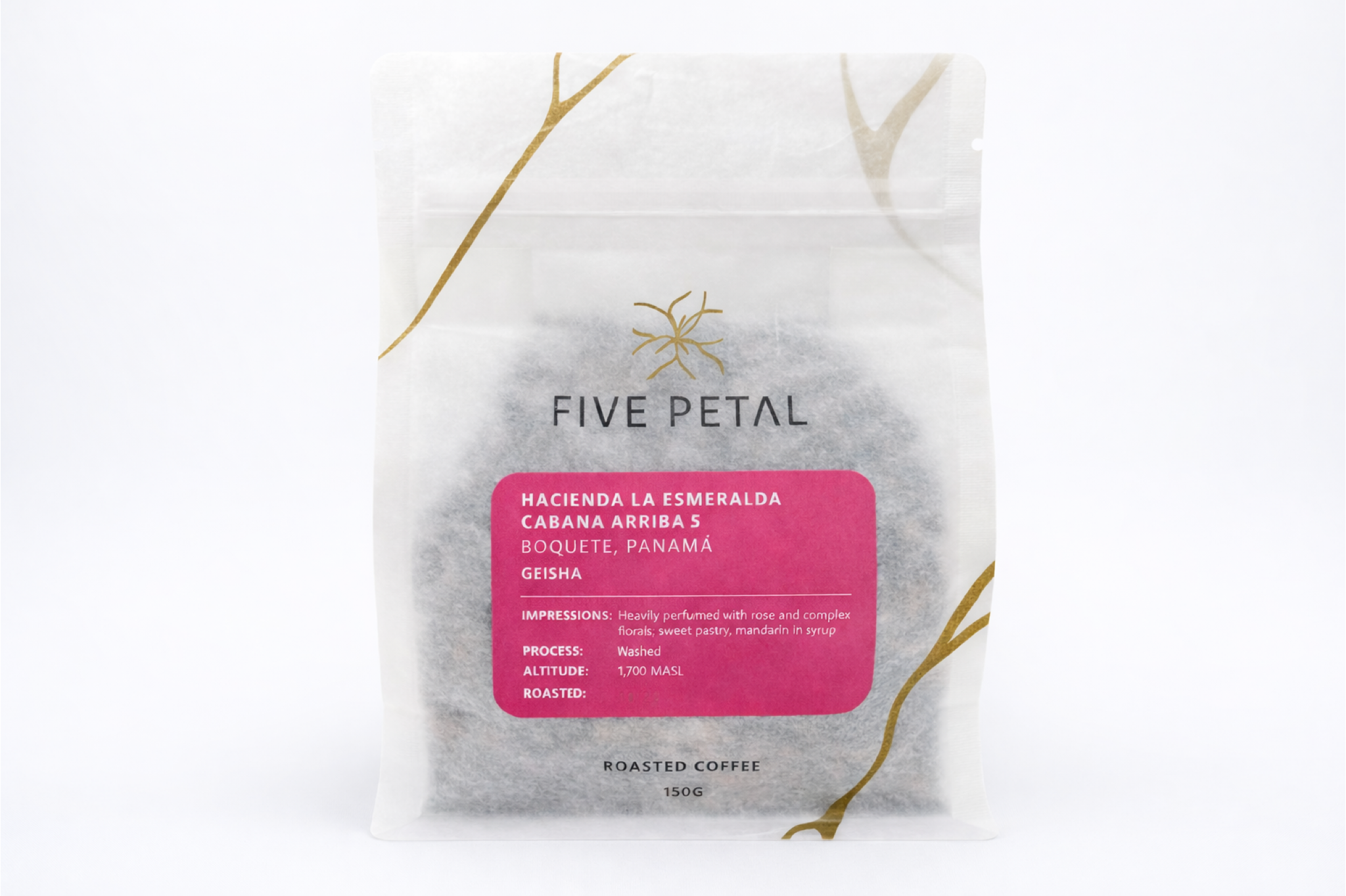 Cabaña Arriba 5 NB was harvested from the highest part of the Cabaña lot in Hacienda La Esmeralda’s Cañas Verdes Farm. The word arriba means up or above in Spanish. After harvest, the coffee cherries were taken to Hacienda La Esmeralda’s mill in Palmira, where they were slow dried for 28 days on raised beds.